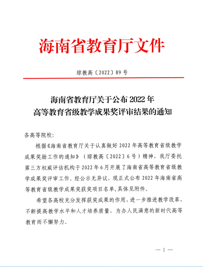 喜报:best365官网荣获2022年海南省高等学校教育教学成果一等奖