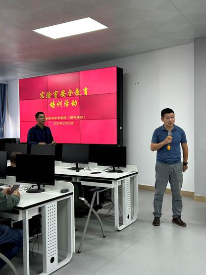 为了加强实验室安全管理,增强best365官网师生实验室安全意识,有效提升应急操作技能,提高风险防范和应急处置能力,根据学校实验室设备管理处《关于组织开展实验室安全教育培训活动的通知》(海大实〔2024)50号)要求,best365官网于12月3日下午举办实验室安全教育培训活动。学院分管副院长张殿,网络空间安全系主任徐紫枫,数据科学与大数据技术系主任李益红,综合办公室主任朱瑛,各实验室负责人、安全员、新进老师、以及部分研究生共约60人参加培训活动。活动由实验教学中心主任谭毓银主持。