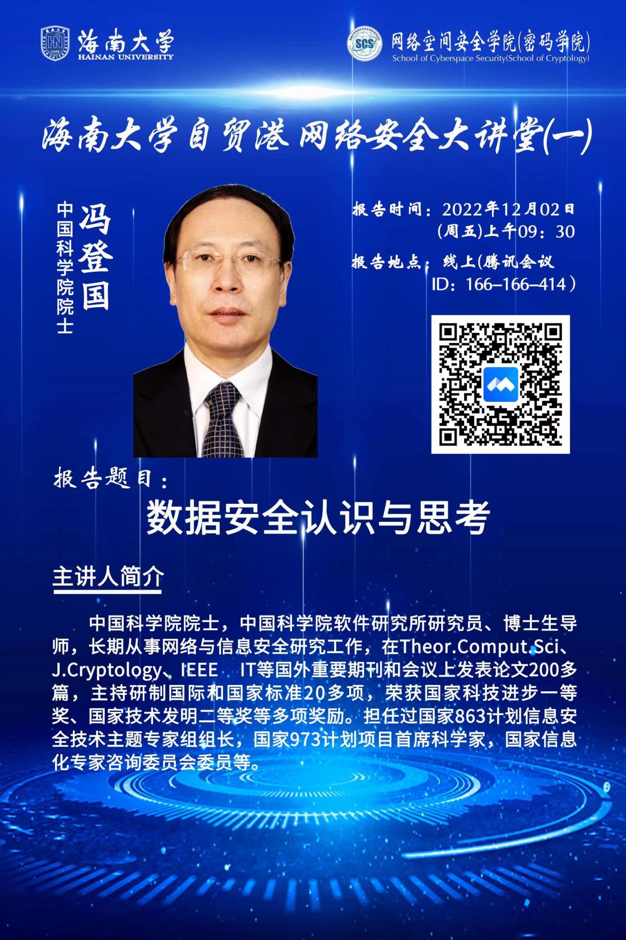【best365官网中文版登录自贸港网络安全大讲堂(一)】数据安全认识与思考--冯登国