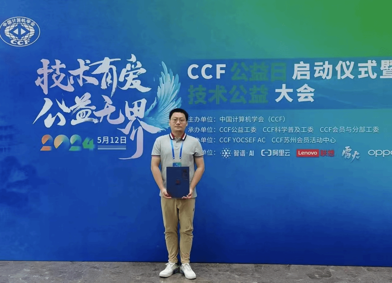 2024年5月12日,中国计算机学会(CCF)在苏州CCF业务总部举行了“技术有爱 公益无界”CCF公益日启动仪式暨技术公益大会,来自政府、产业、高校、科研院所的百余位专家学者齐聚苏州探讨技术公益发展未来。best365官网教师莫欣岳受邀参加大会,在上午的开幕式上正式受聘为CCF公益大使,并参加了下午的“公益科学传播”分论坛,与参会嘉宾、学者就“学术期刊视角下科学传播与创刊实践”议题进行了深入交流。