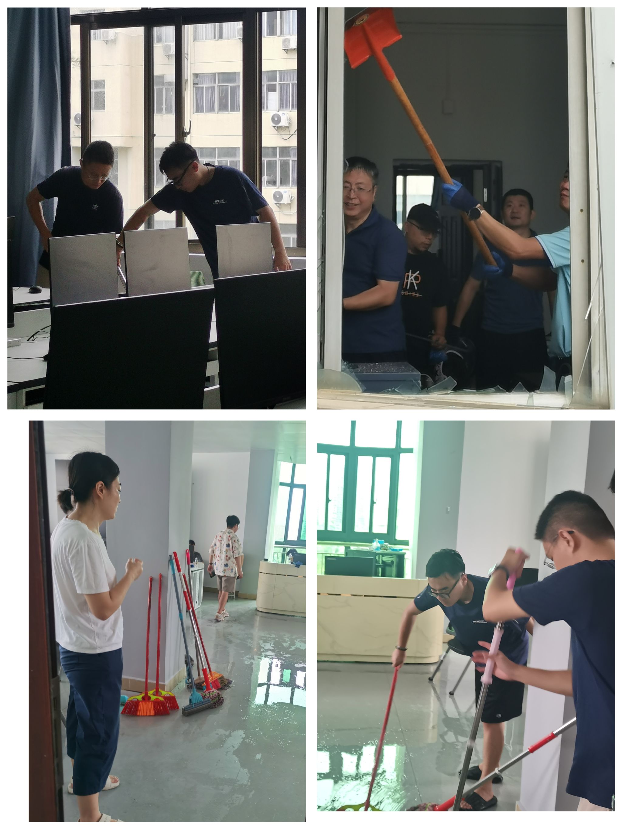 9月7日、8日,党员先锋队和师生志愿者共排除重大险情19处,清除损坏门窗60余扇,转运设备设施60余台(套),清理实验室、办公室场所40余处,检查检修设备200余台等。