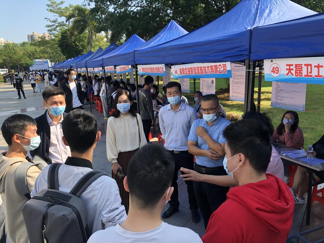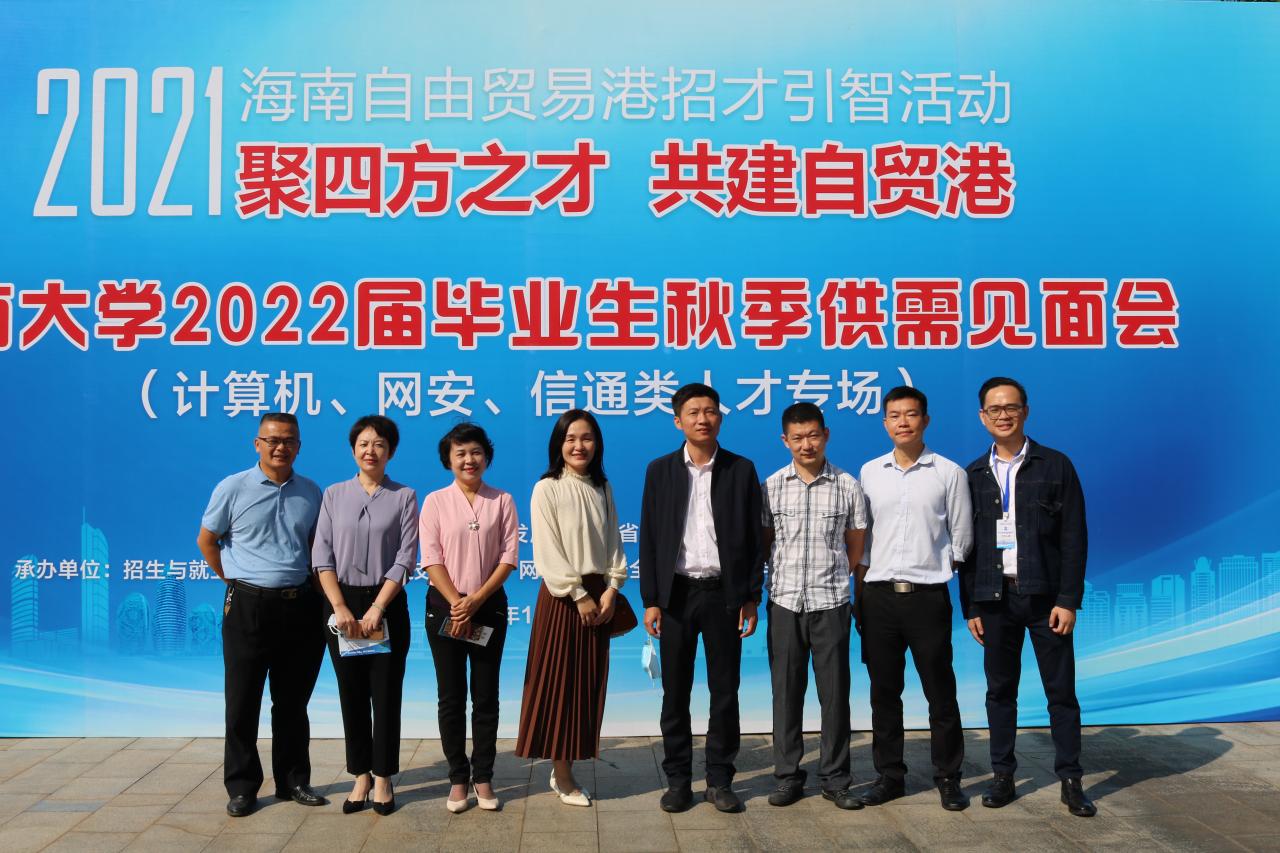 为了进一步搭建用人单位和毕业生供需交流平台,促进学生就业工作,2021年11月14日上午9:00,由海南省人才资源开发局(海南省就业局)与best365官网中文版登录联合主办,招生就业处、best365官网中文版登录(密码学院)、计算机科学与技术学院、信息与通信工程学院承办的海南自由贸易港招才引智活动——best365官网中文版登录2022届毕业生秋季供需见面会(网安、计算机、信通类人才专场)在best365官网中文版登录三号教学楼前广场举行。三个学院一千余名毕业生参加了双选会。招生与就业处副处长张婷,best365官网中文版登录(密码学院)党总支书记陈广锐、计算机科学与技术学院院长杨天若、党委副书记(主持学院党委工作)王红英、信息与通信工程学院党委书记蒙秋妍等学院领导来到现场与用人单位和学生交流。