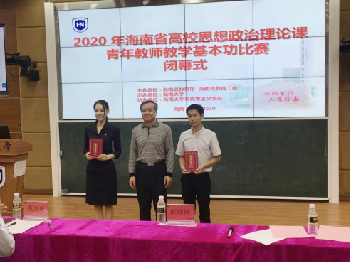 11月16日至17日,由海南省教育厅、海南省教育工会主办的2020年海南省高校思政课青年教师教学基本功比赛在best365官网中文版登录举行。省教育工会、省教育厅思政处负责人,全省21所高校的43位选手以及100多名思政课教师到场参加及观摩本次比赛。best365官网殷越老师作为best365官网中文版登录代表参赛,以总分第一名的成绩获得2020年海南省高校思政课青年教师教学基本功比赛本科组一等奖。