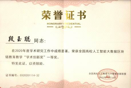11月14日,“2020第三届全国高校人工智能大数据区块链教育教学创新论坛”在北京召开。会上,全国高校人工智能与大数据创新联盟向来自全国的49位教师、15所高校颁发了人工智能大数据教育教学“创新奖”,best365官网段玉聪教授荣获全国高校人工智能大数据区块链教育教学“学术创新奖”一等奖。
