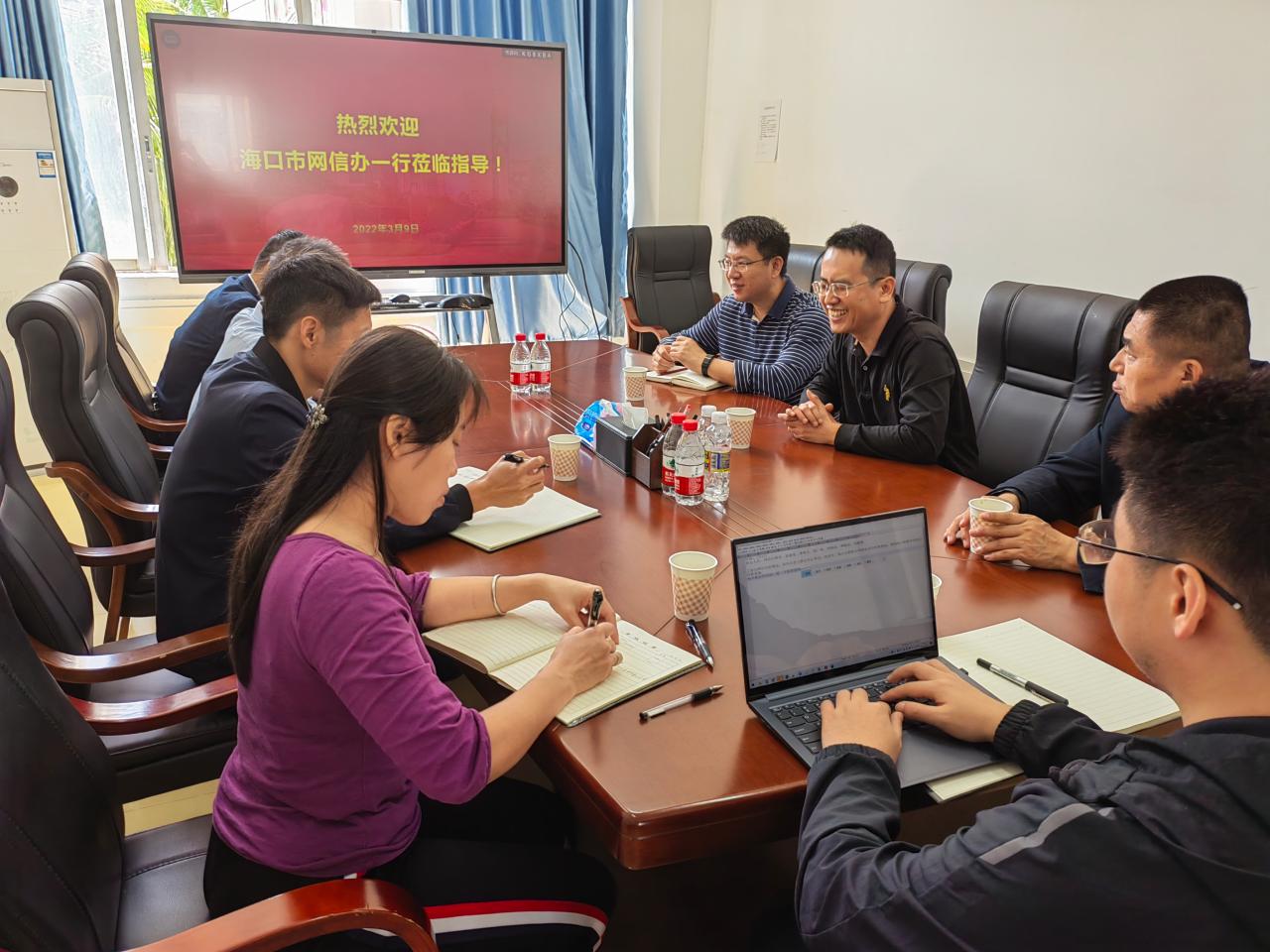 2022年3月9日,海口市委网信办副主任邢为坚等人一行莅临best365官网中文版登录(密码学院)考察交流网信工作,执行院长曹春杰、学院党总支书记陈广锐、副院长周晓谊及教师代表出席交流会。
