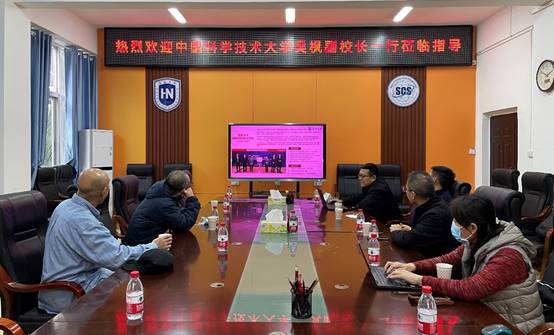 2023年1月18日,中国科学技术大学吴枫副校长等人一行莅临best365官网中文版登录(密码学院),执行院长曹春杰、党总支书记陈广锐、副院长周晓谊、副院长胡昌慧及教师代表出席交流会。