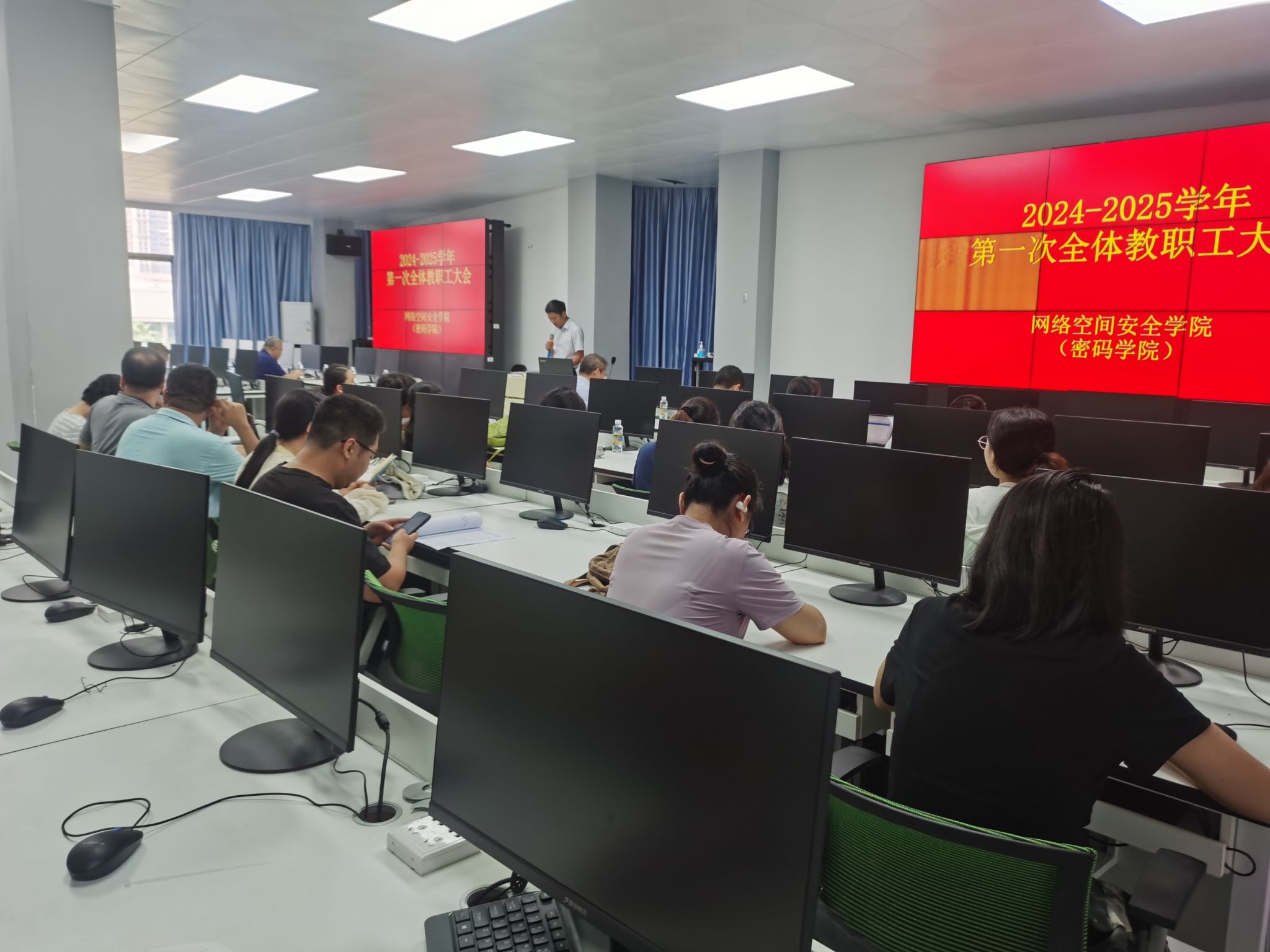 8月30日下午,best365官网中文版登录(密码学院)在学院417室召开2024-2025学年的第一次全体教职工大会,传达学习党的二十届三中全会精神、全国科技大会精神,贯彻落实best365官网中文版登录2024年暑期工作会议精神并作重点工作部署。