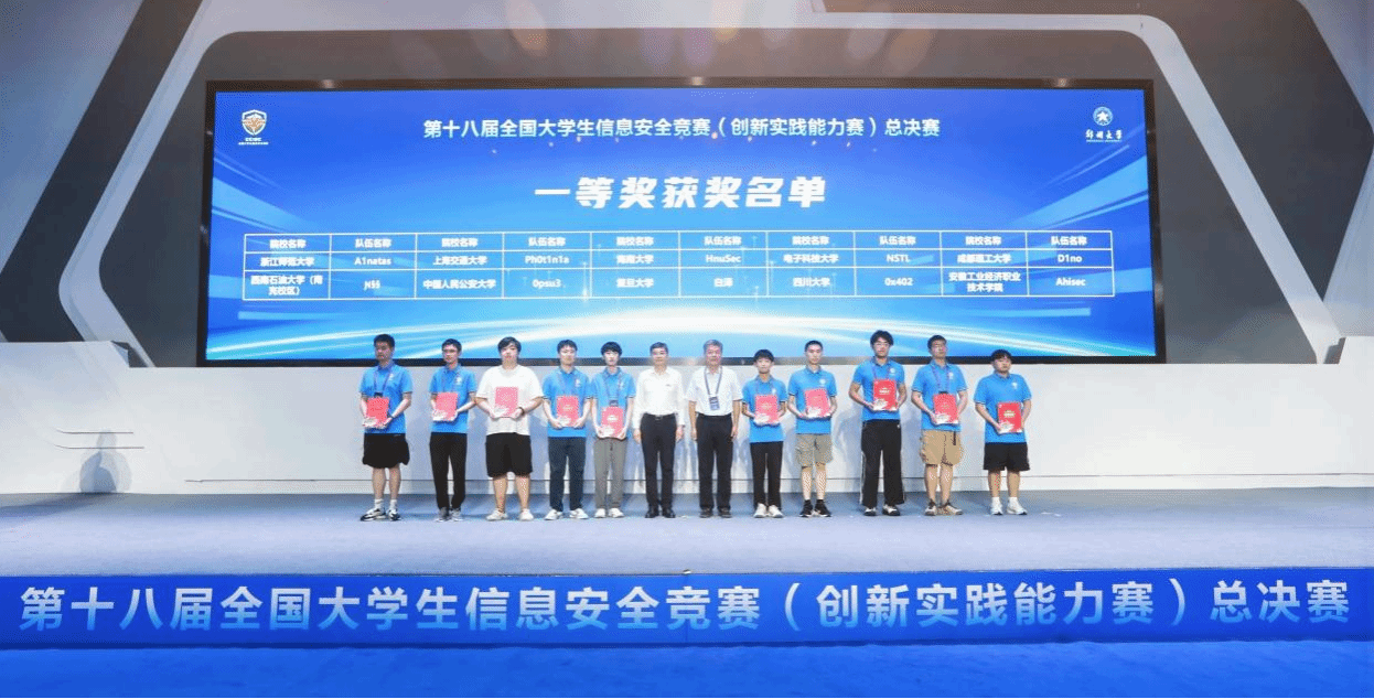 2025年7月19日至20日,由教育部高等学校网络空间安全专业教学指导委员会主办,郑州大学、郑州高新技术产业开发区管理委员会承办的第十八届全国大学生信息安全竞赛(创新实践能力赛)总决赛在河南郑州举行。best365官网中文版登录的HnuSec战队(高贝克、杨奕亮、张庆晗、陈颂智)在本次比赛中荣获国家级一等奖,指导教师徐紫枫获“优秀指导教师”称号,在该项赛事中实现零的突破,创best365官网历年最好成绩!