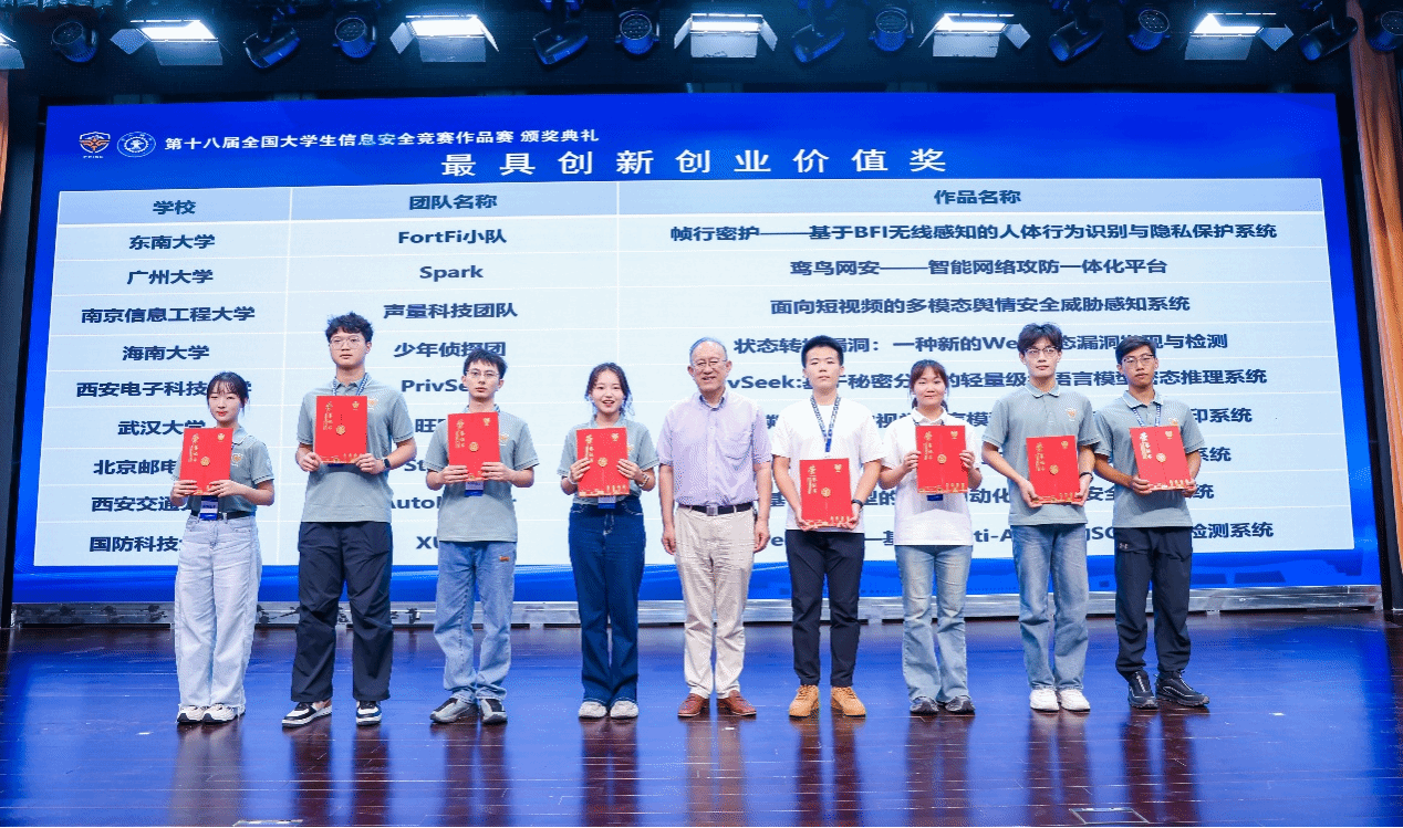 8月13日至8月16日,第十八届全国大学生信息安全竞赛作品赛决赛在西安交通大学兴庆校区举办。best365官网中文版登录学生参赛队伍荣获佳绩,斩获全国一等奖1项、三等奖1项、最具创新创业价值奖1项。