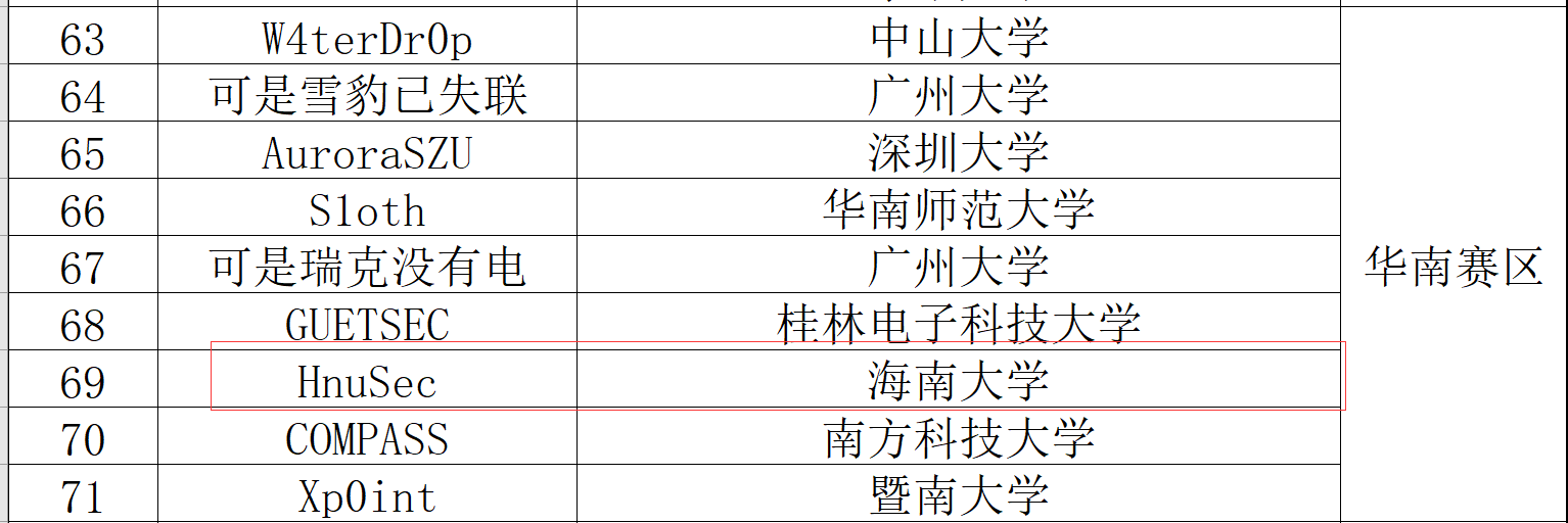 线上初赛时间为5月27-5月28日,经过16小时的激战,华南赛区共计选取了50支战队参加分区总决赛,best365官网学子顺利晋级分区赛决赛。华南分区半决赛于6月24圆满结束,经过8小时奋战,best365官网HnuSec战队成功晋级全国总决赛。